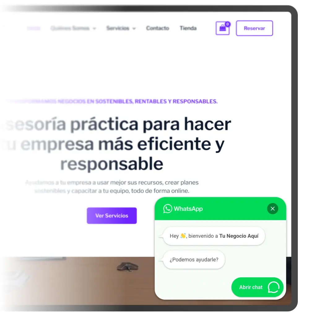 El resultado: Verás el botón de WhatsApp fijo y visible en tu web. Cuando un cliente haga clic, la aplicación se abrirá automáticamente, convirtiendo una visita anónima en una conversación de venta inmediata.