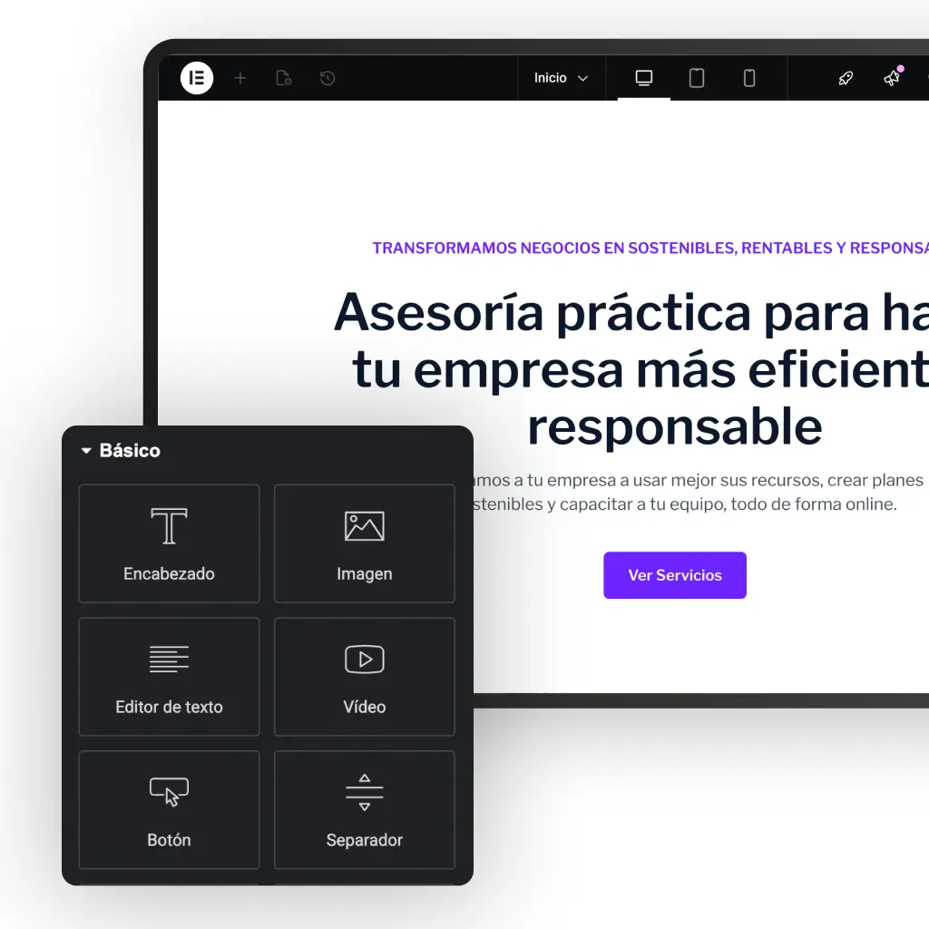 Constructor visual: Instala y activa Elementor. Es el constructor más fácil de usar, perfecto para principiantes.